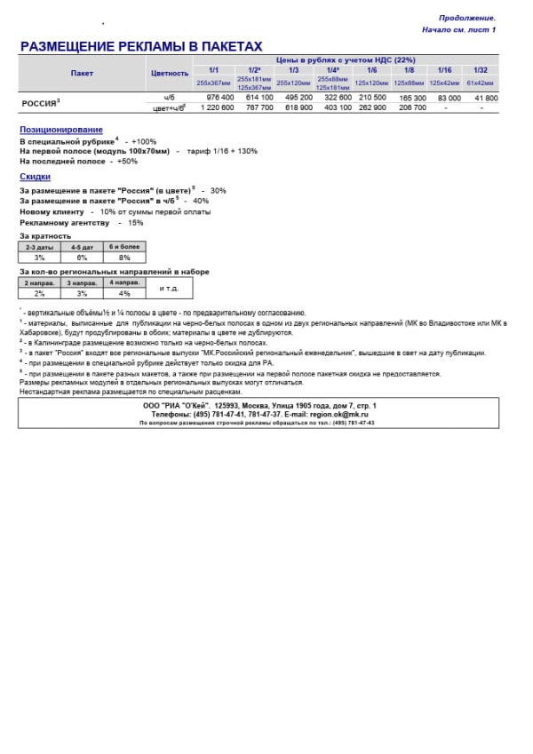 РИА 'О'Кей: реклама в МК и других газетах и журналах ИД "Московский Комсомолец"